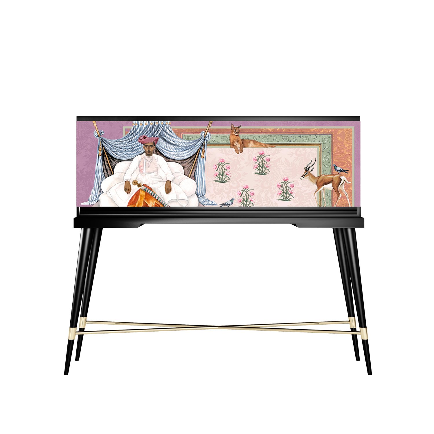 MATERIAL – Wood carcass, printed lacquered wood with brass elements.