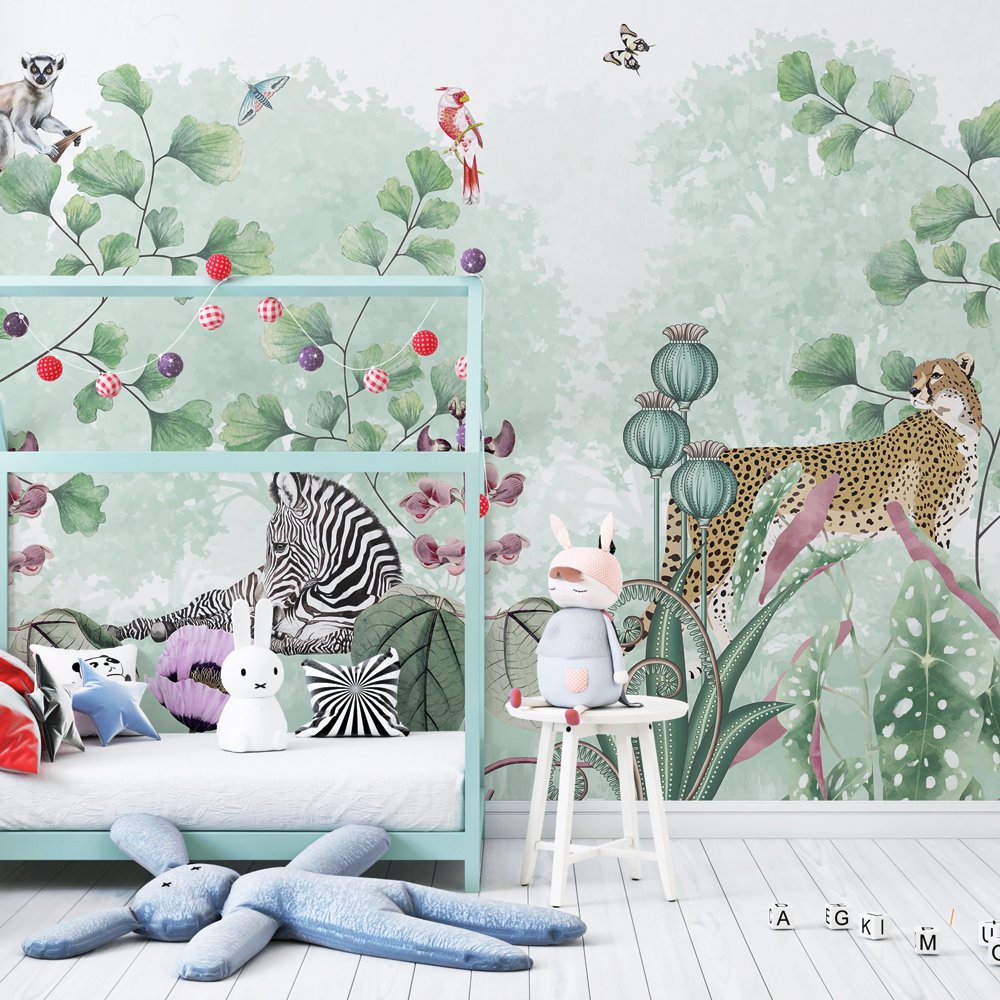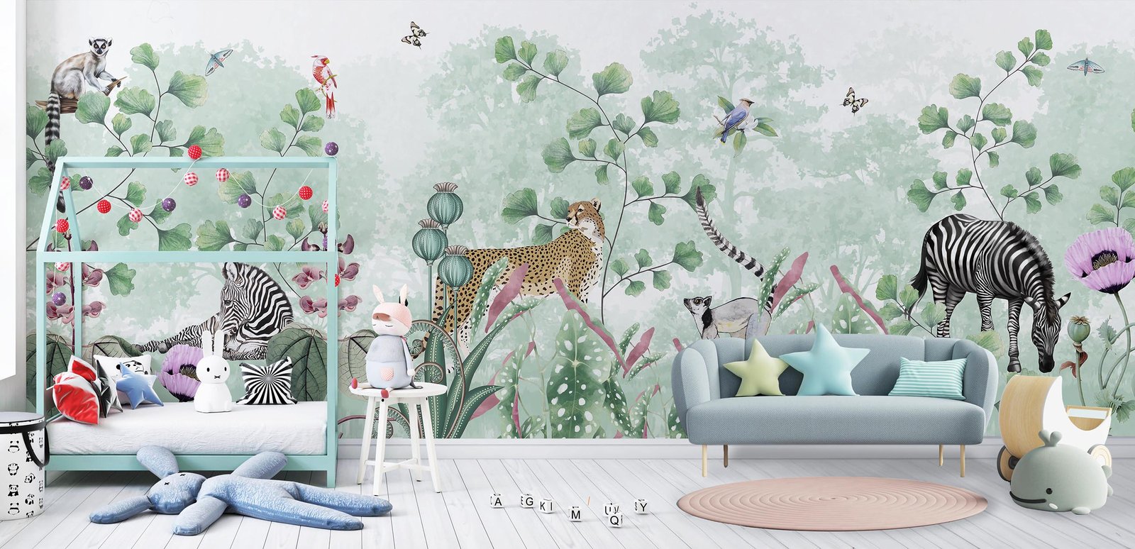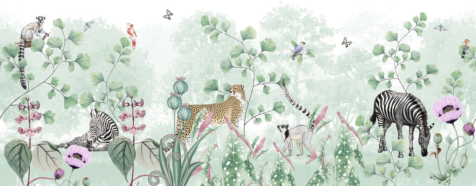 Every child has a wild heart, and Le Zoo lets it run free. Imagine a jungle alive with stories, where peacocks preen under leafy canopies, elephants march with gentle pride, and mischief hides behind every fern. This wallpaper isn’t just design—it’s an open passport to imagination. Rooted in Indian storytelling and reimagined through the curious lens of childhood, Le Zoo turns walls into adventure maps, where every glance invites a new tale. Perfect for young explorers who build safaris in their dreams and speak to animals in secret languages.