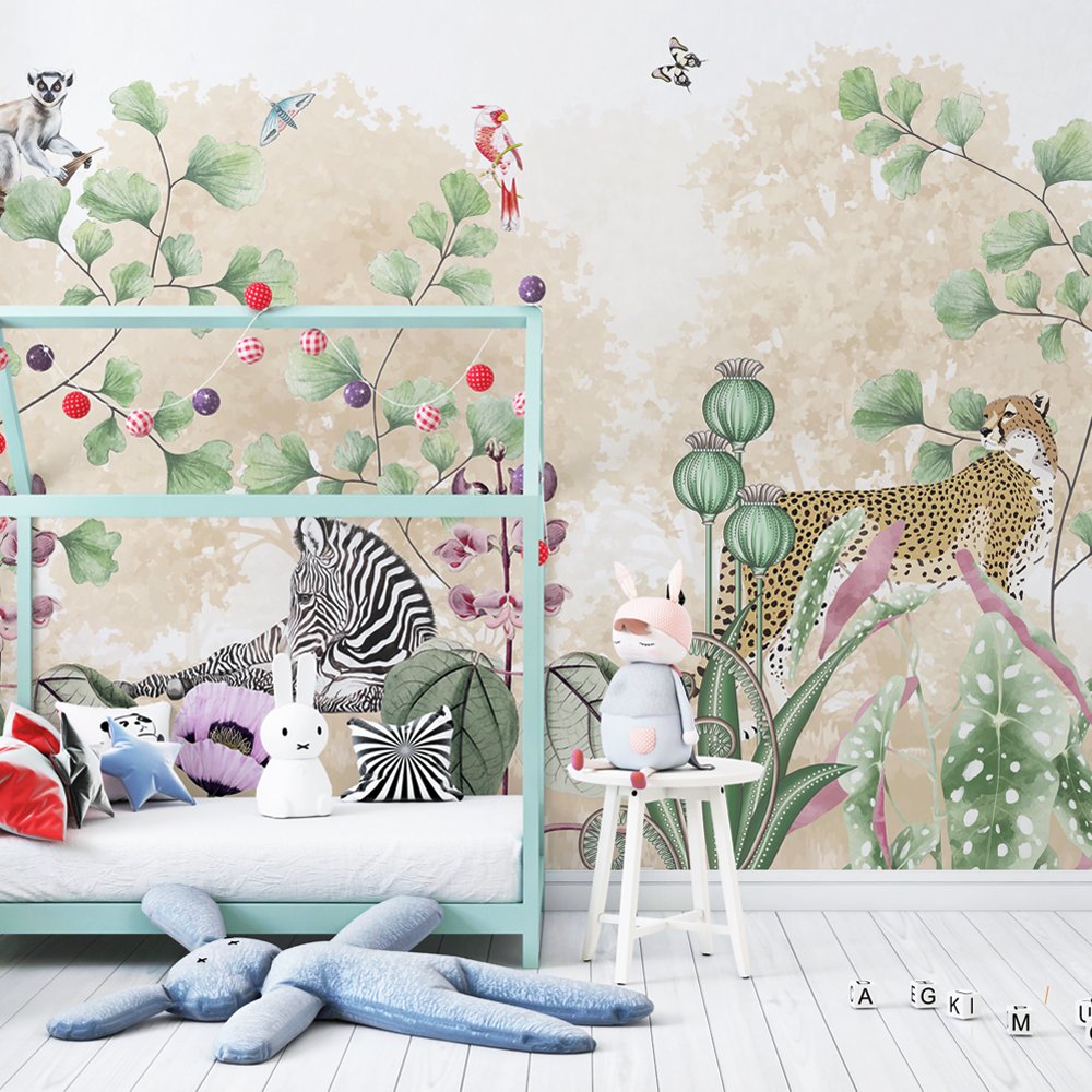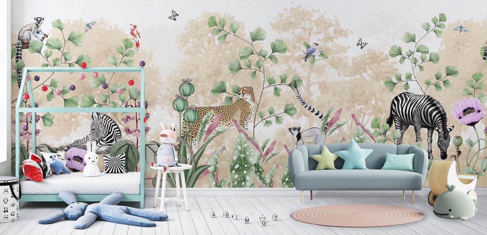 Every child has a wild heart, and Le Zoo lets it run free. Imagine a jungle alive with stories, where peacocks preen under leafy canopies, elephants march with gentle pride, and mischief hides behind every fern. This wallpaper isn’t just design—it’s an open passport to imagination. Rooted in Indian storytelling and reimagined through the curious lens of childhood, Le Zoo turns walls into adventure maps, where every glance invites a new tale. Perfect for young explorers who build safaris in their dreams and speak to animals in secret languages.